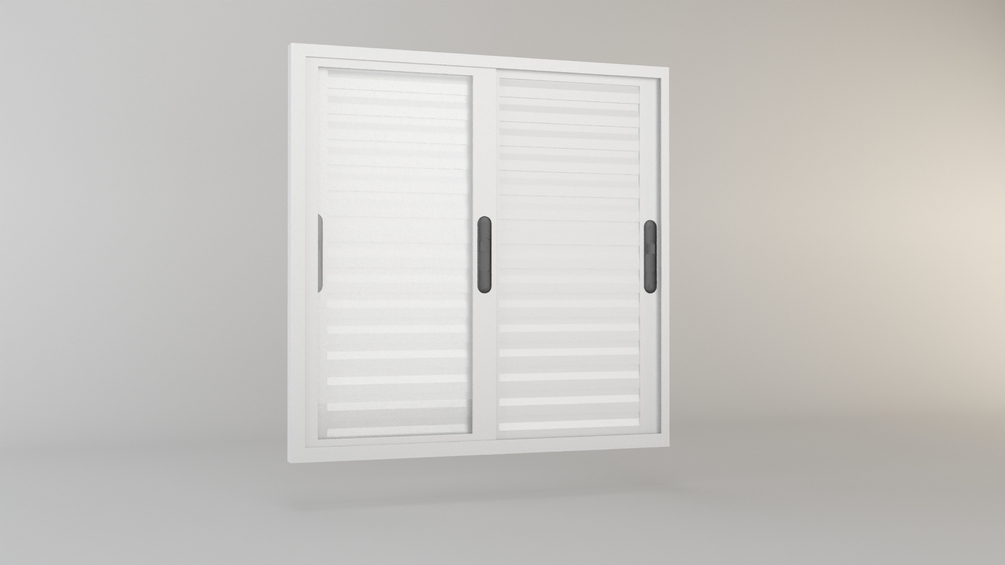 White aluminum window with 3 leaves, one of which is glass.